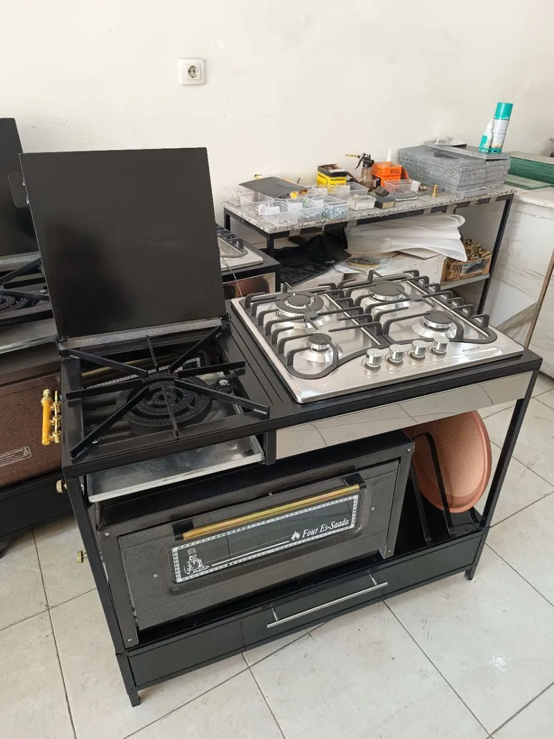 طابونة مع طاجين لمحاجب وفور السعادة 70سم وقجر مع plac Multi smart inox 4feu طول 115سم عرض 55سم إرتفاع 85سم